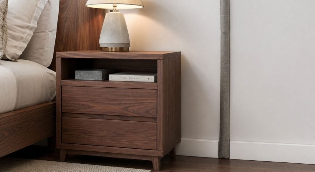 Focus heavily on cleanliness and distinct organization rather than buying expensive new decor. An empty, clean nightstand looks much better than a cluttered, expensive designer one. Repurpose glass jars to hold your small items neatly inside your hidden drawers. Creativity solves interior design problems much better than blindly throwing money at them.