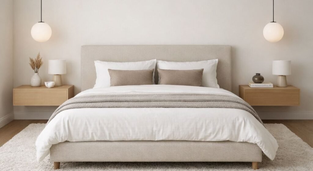 Warm oatmeal, soft sage green, or dusty blue create immediate physical relaxation. These neutral colors reflect your morning sunlight beautifully and soften harsh evening shadows. Match your bed linens to these wall colors for a highly cohesive aesthetic. A unified color palette visually calms your tired, overworked mind.